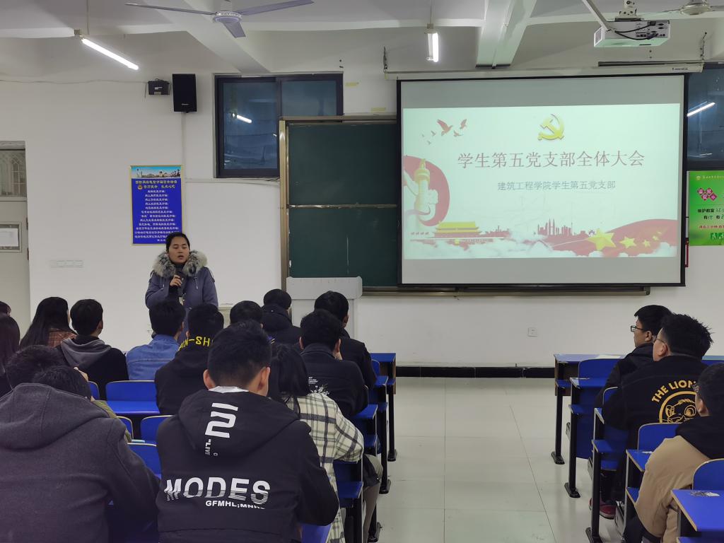 首先,支部书记和三位委员向各同学分别作了自我介绍,随后,李俊鹤同志向大家介绍了员工支部内委员设置、员工党员规模、拟发展党员人数等情况,并对如何从入党积极分子到成为正式党员这一过程、条件和支部考勤进行了详细的说明。同时重点强调入党积极分子是正式党员的候选人,大家要遵守校规校纪,积极参加支部活动,时刻以党员的标准要求自己,在日常学习生活中发挥先锋模范作用。