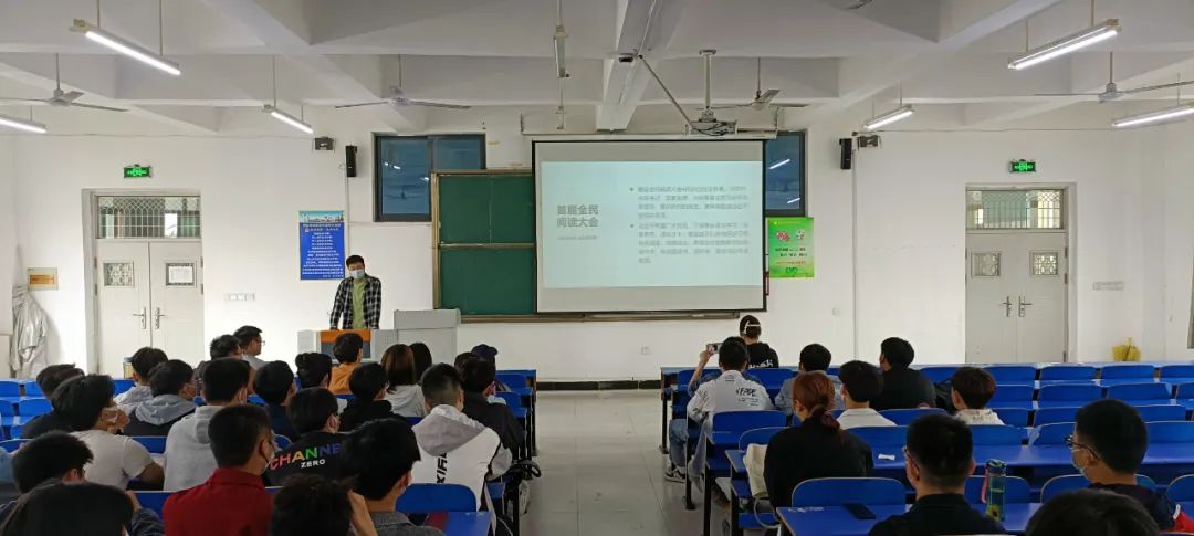 活动伊始,宋江洋冋志以“推进全民阅读有怎样的意义”这一问题为切入点,指出阅读是获取知识,增长智慧的重要方式,是“升华精神力”、“汇集凝聚力”、“提高竞争力”、“增加幸福力”的重要途径,推进全民阅读,对加强社会主义精神文明建设,促进社会进步具有重要意义。接着,宋江洋同志向大家推荐了一些优质读物,并鼓励同学们积极发言,分享个人喜爱书籍和阅读感悟。最后,宋江洋同志号召大家从自身做起,多读书、读好书,带动同学及周边人,陶冶情操,充实生活。