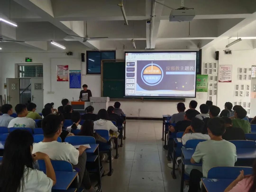 会议伊始,由李海涛同志通过一个个鲜活的案例,使同学们对邪教的本质有了深刻的认识。随后,他带领大家了解了宗教和邪教的区别,邪教蛊惑蒙骗他人,系统地介绍了抵制邪教的方法,使大家受益匪浅。李海涛同志强调在自己反对邪教的同时,要关心他人,不要让邪教危害到自己身边的人。会议最后,大家形成一致共识,崇尚科学,健康生活,抵制邪教。