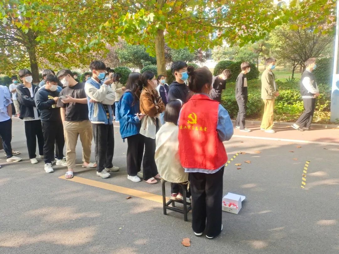 员工党员提前到达核酸点进行准备工作。在基层防疫一线践行着员工党员的责任和担当,并切实体会到防护服下医护人员的艰辛和不易。时值深秋,员工党员几个小时的工作,依旧满头大汗,不曾有一丝懈怠。员工们积极配合,此次工作圆满结束。