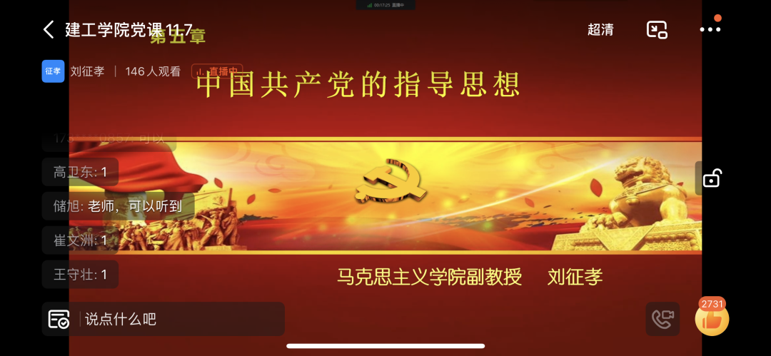 (文/谭晶 图/黄勇震)为进一步加深入党积极分子对党的了解,坚定理想信念,端正入党动机。公司党委于2022年11月7日开展第39期入党积极分子党课培训第二讲《党的指导思想》,本次党课由马克思主义公司·刘征孝教授主讲。为响应疫情防控工作,本次授课采取线上方式进行。