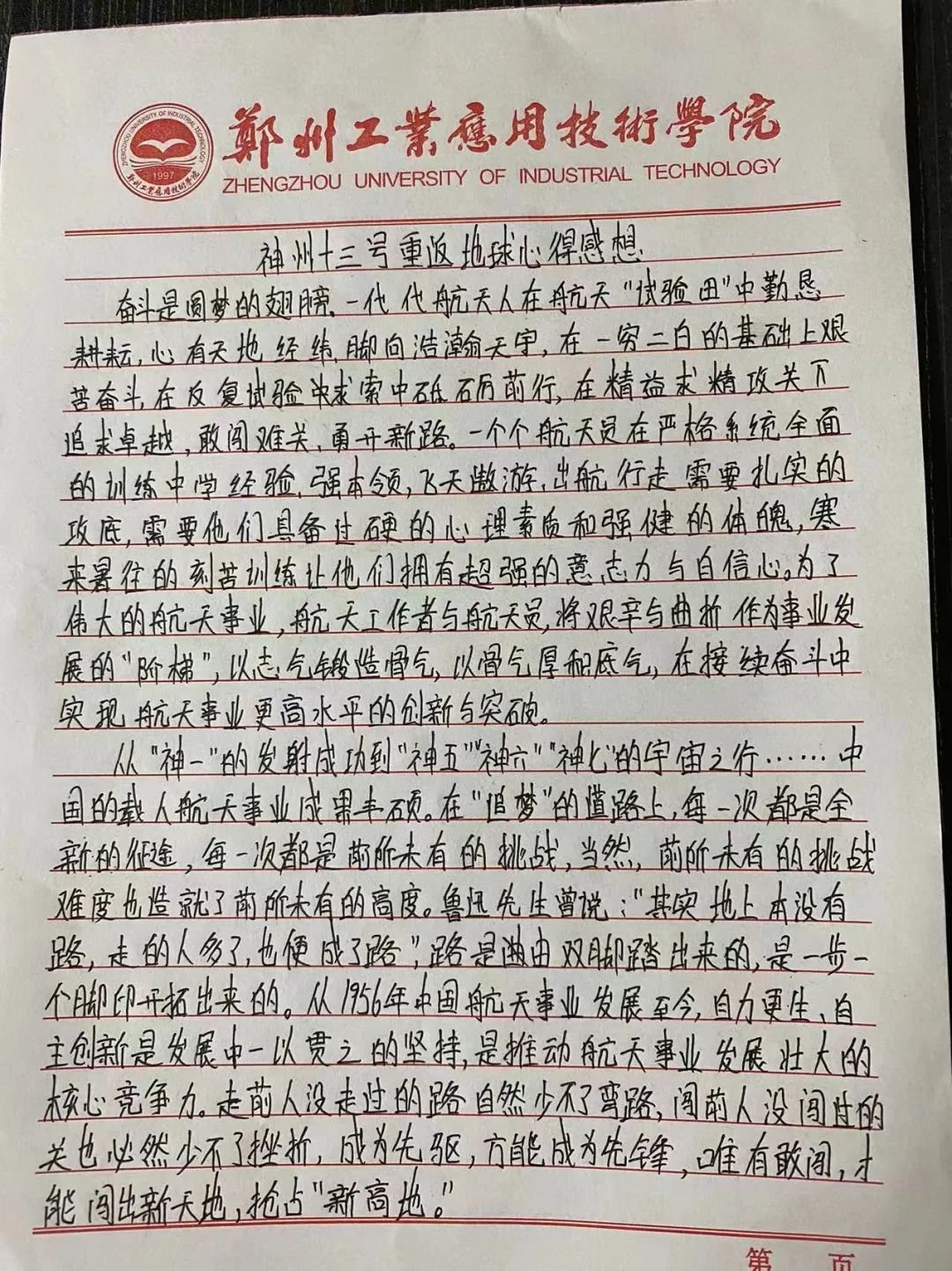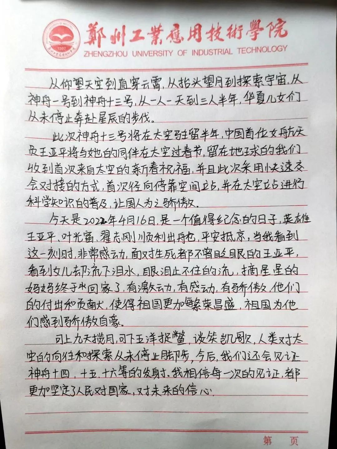 从神舟一号到神舟十三号,从无人到载人,从一人到多人,中国航天在浩瀚的宇宙中不断探索。中国在航天领域取得的成绩,是祖国强盛的证明,而航天梦作为一个中国梦的一个缩影,足以激励一代代青少年奋发向上。