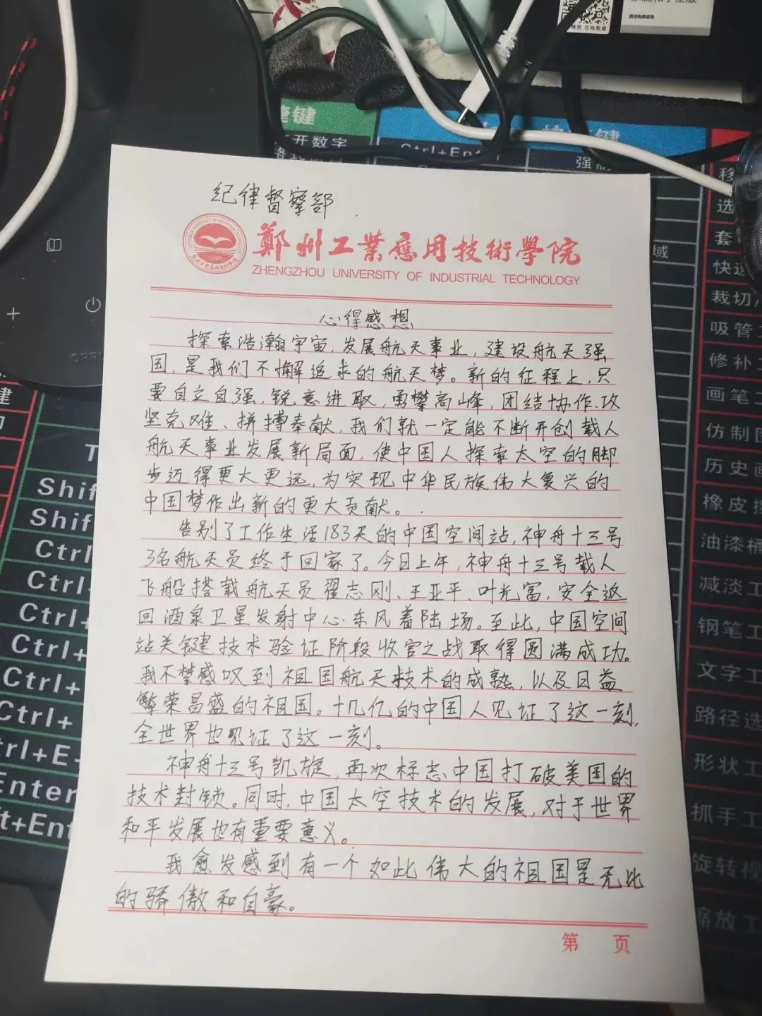 通过本次观看直播,建工学子们共同见证了神舟十三号载人飞船返回舱顺利着陆的全过程,见证了祖国又一次的骄傲和辉煌。此次活动,让建工学子们及时了解了国家大事,关注了社会动态,培养了建工学子们的社会责任感,激发了建工学子们的国家和民族自豪感。作为新时代的青年,我们更应该传承并发扬航天精神,向航天人员学习。没有比脚更长的路,没有比人更高的山。