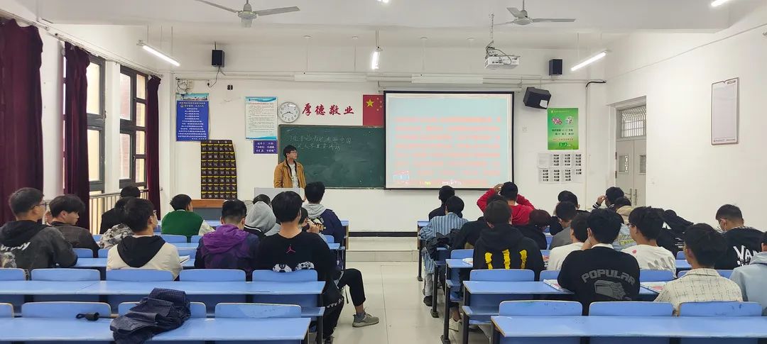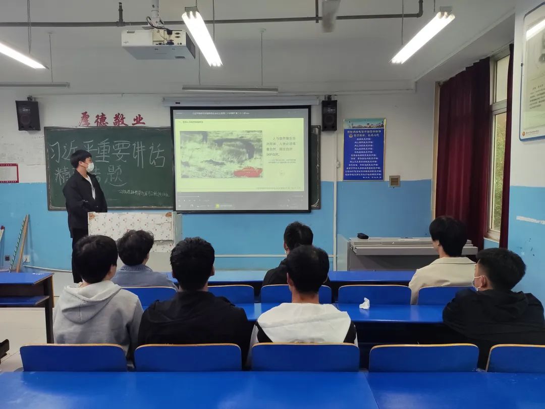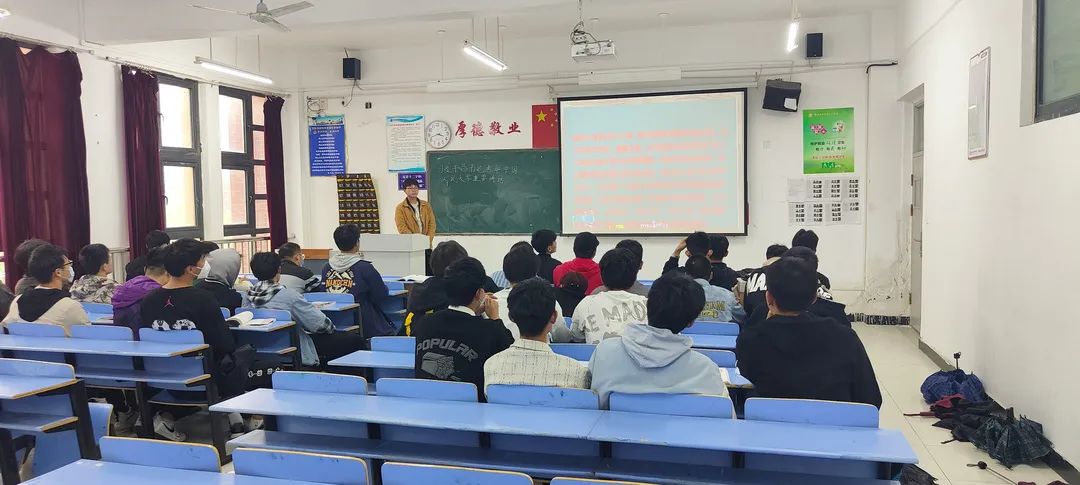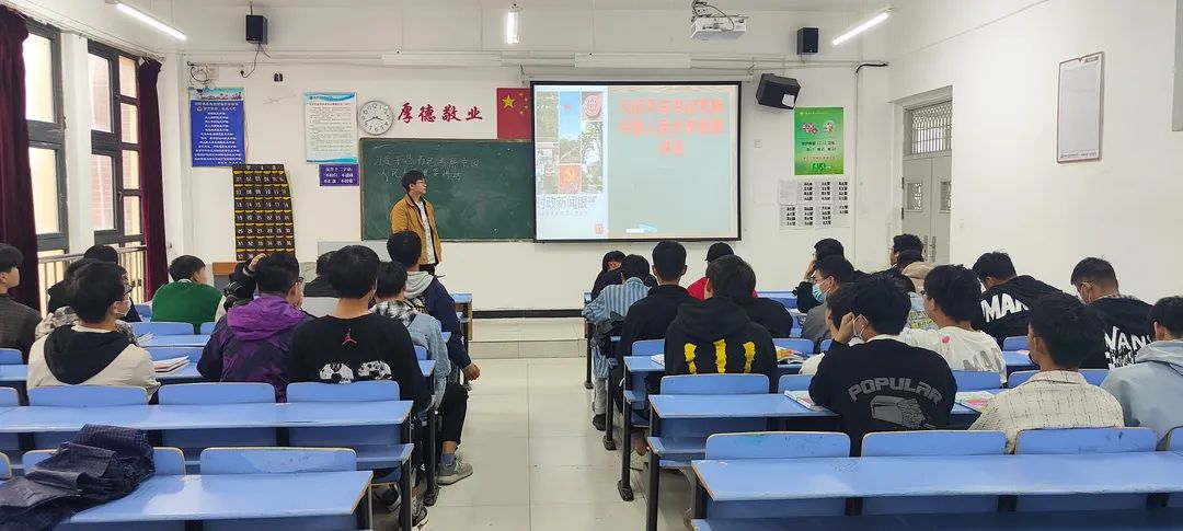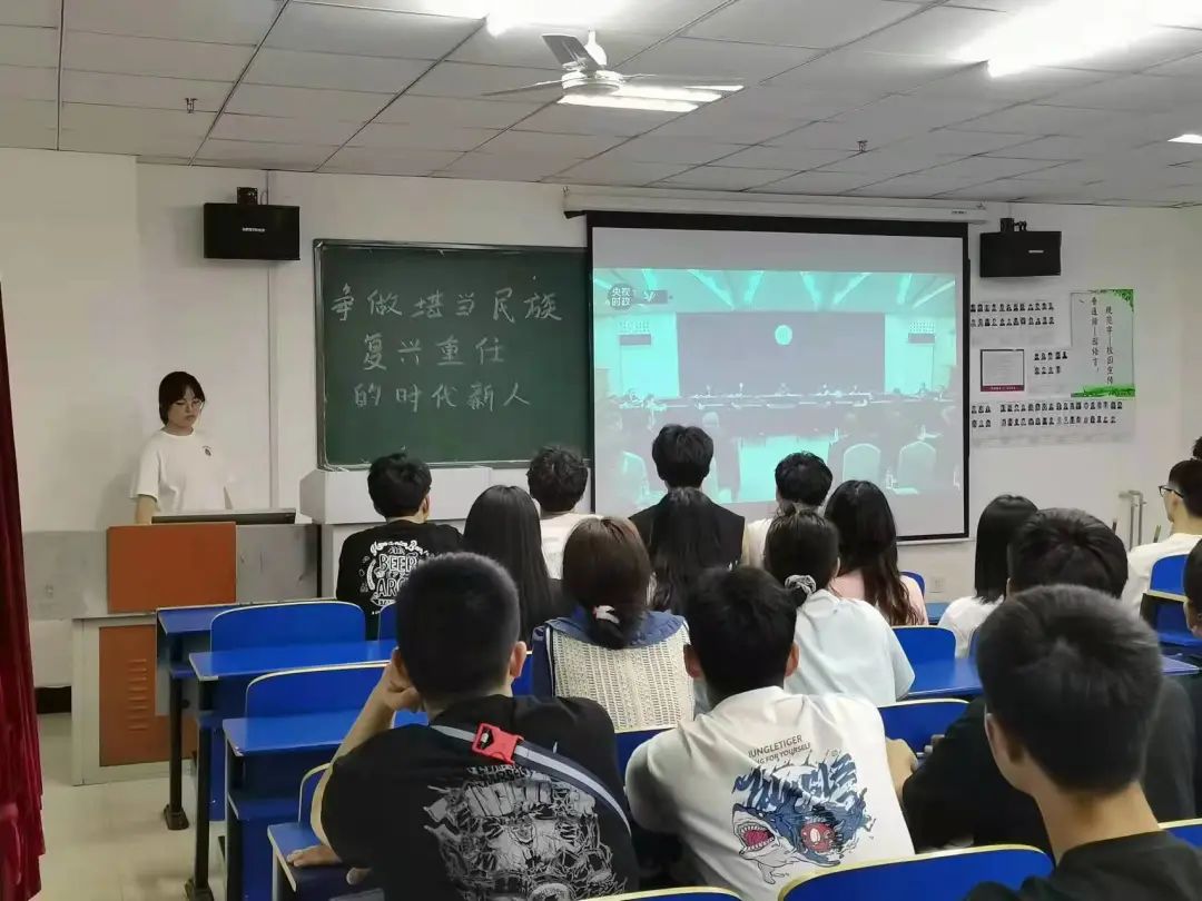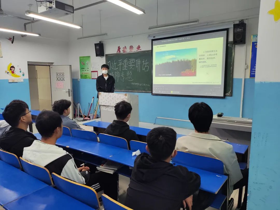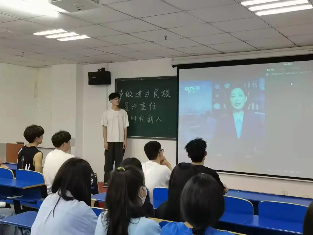 本次主题班会,由团支书向大家讲述了习近平总书记的讲话内容--“坚持党的领导 传承红色基因;办好思政课程 培养时代新人;做好大先生 培育接班人;回答时代之题 彰显中国之理;争做堪当民族复兴重任的时代新人”。