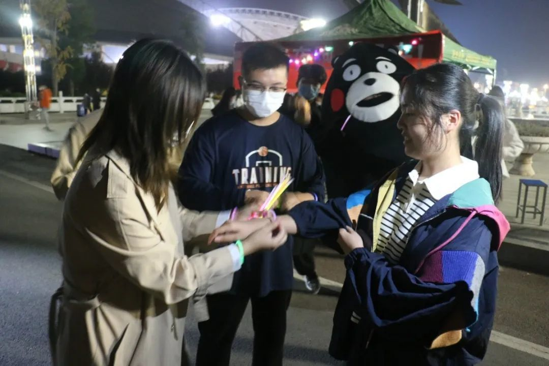 365VIP英国上市官网员工会宣传交流部负责的“荧光夜跑”活动站为夜跑的同学提供荧光手环,希望运动者带着荧光手环运动,更有动感。