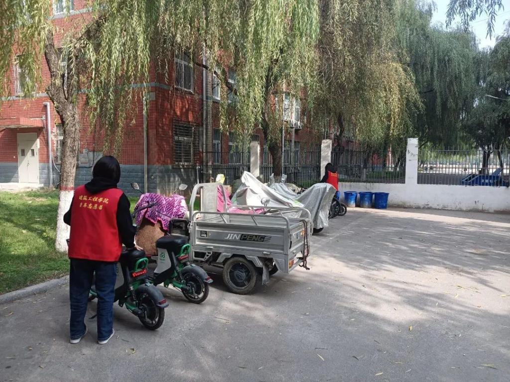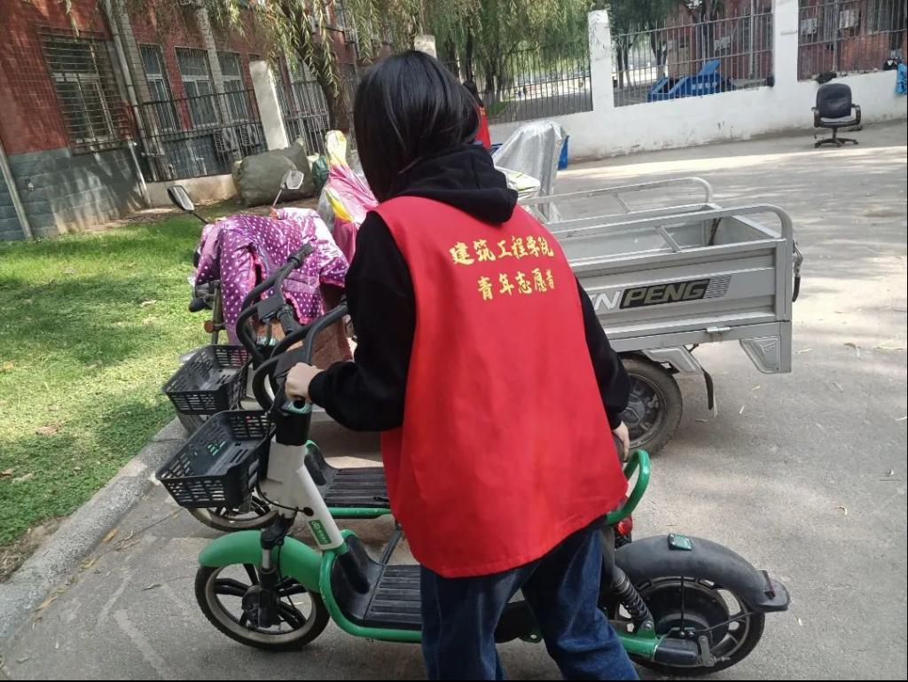 活动中,随处可见各色各样的电动车、自行车纵横交错地停在宿舍楼下、人行道边、教学楼外围,志愿者将其进行了有序排列,把乱停放的车重新整齐地摆放到规定的停车区内,人行道上的秩序更加规范,行人行车也更加畅通。