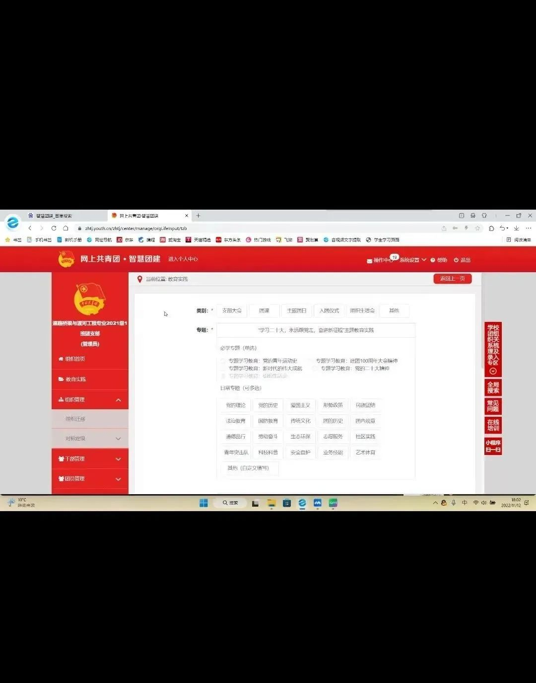 为做好团支部建设与信息完善工作,更好地运行“智慧团建”系统,加强对系统操作流程的认识和了解,帮助各班团支书做好日常管理工作。11月12日晚365VIP英国上市官网在腾讯会议上召开“智慧团建”系统培训会,高卫东同学主持会议,365VIP英国上市官网各班级团支书参加会议。