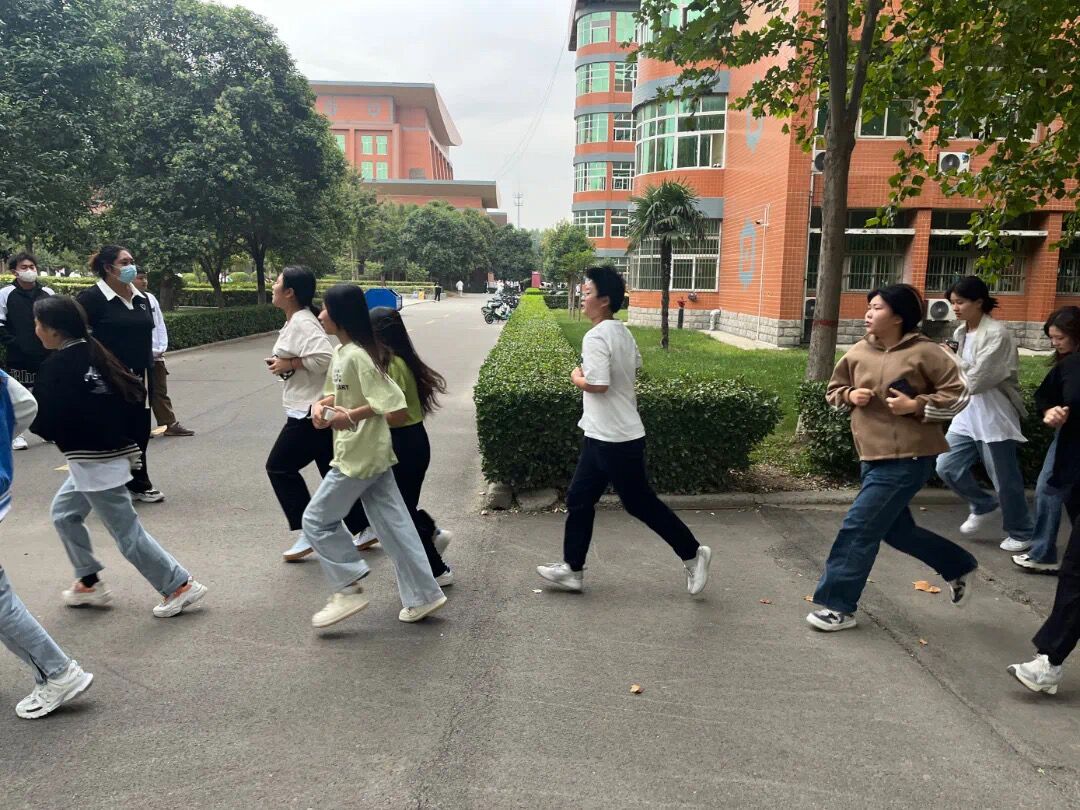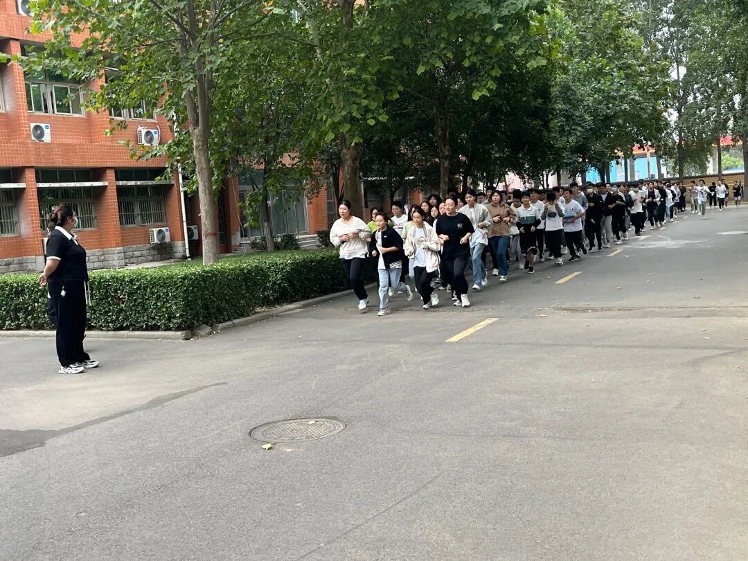 当清晨的阳光升起之时,同学们在辅导员老师的陪伴下开始了今日的晨练。我们的辅导员老师也从此刻正式投身于今天的工作中。