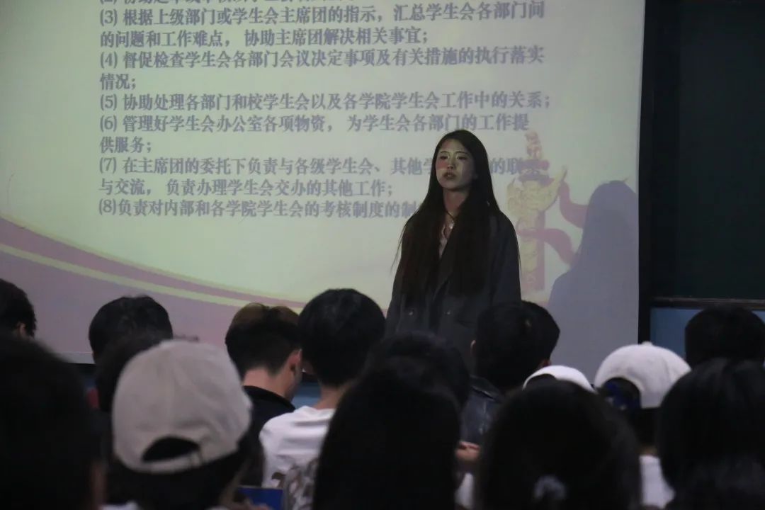为持续深化员工会组织改革,不断改进工作作风,增强员工组织服务意识与工作能力,推动员工组织健康有序发展。在全体见面会后,由新媒体工作室、团员教育中心、自律委员会各部门负责人分别为新加入的员工干部阐述各部门职责,并向同学们讲述了具体的工作思路、工作流程。同时,也为同学们分享了大学中如何明确学习目标和提升学习能力的方法,为同学们树立了良好的榜样,指明了正确的方向。
