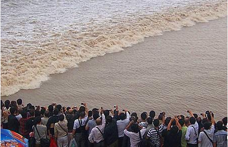在古代,浙江一带除中秋赏月外,观潮可谓是又一中秋盛事。中秋观潮的风俗由来已久,早在汉代枚乘的《七发》赋中就有了相当详尽的记述。汉以后,中秋观潮之风更盛。明朱廷焕《增补武林旧事》和宋吴自牧《梦粱录》也有观潮记载。