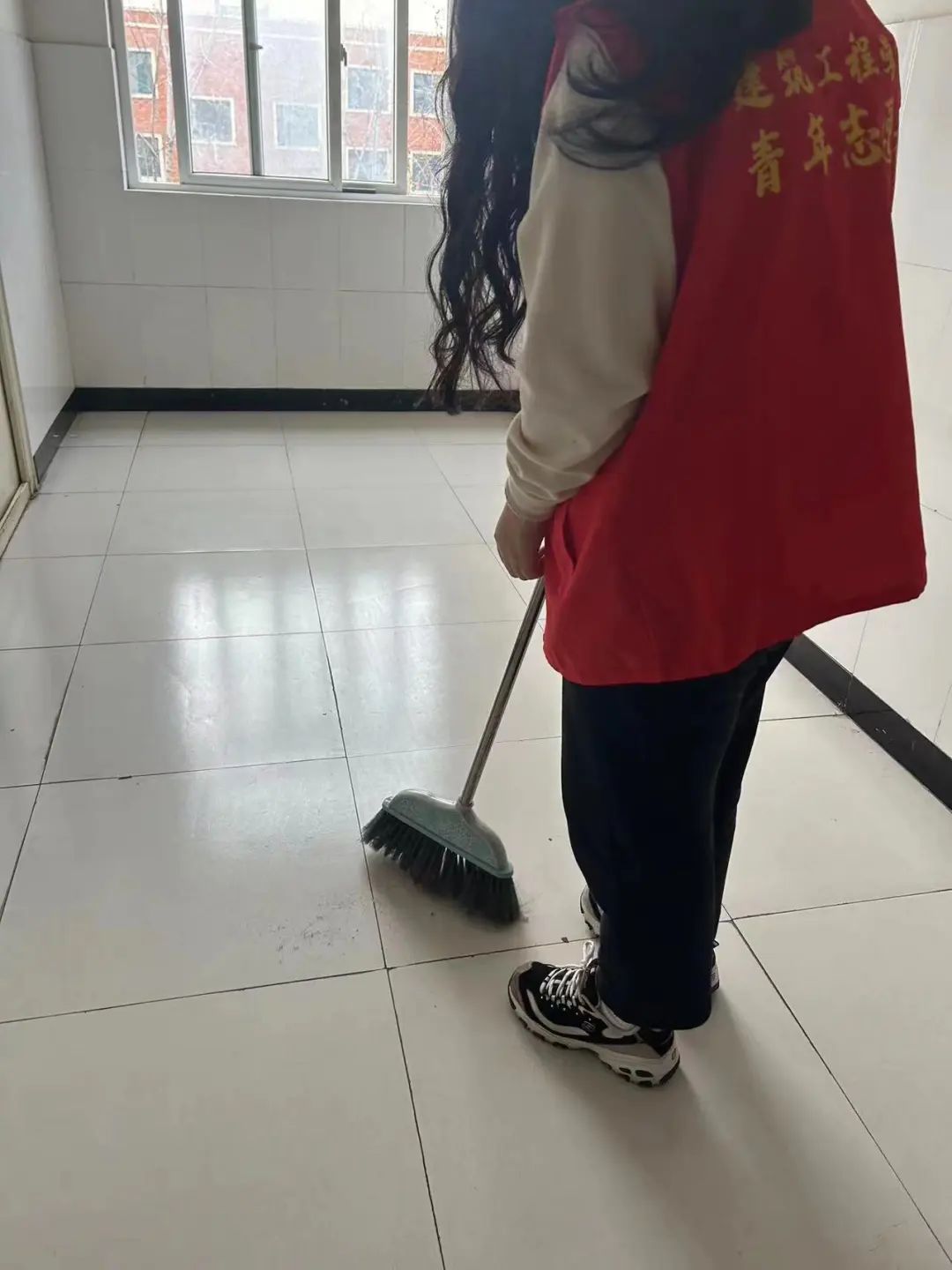 活动过程中,志愿者们对打扫区域进行详细分工,分别进行了门窗、走廊、楼梯等的清理。他们全身心投入到这场劳动中,认真打扫每一个角落,确保宿舍卫生整洁无垃圾,各个卫生死角无积灰、无污垢,进行高效清理,用实际行动践行劳动教育的精神。