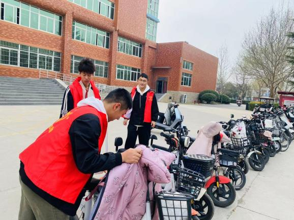 针对的就是公司内的自行车和电动车乱停乱放问题。在非机动停车位区域中,班级成员将摆放不整齐的自行车统一摆放在指定位置,同时向同学们宣传文明停放自行车的理念,劝导未按规定摆放自行车的同学将车辆主动停放在自行车停车区。