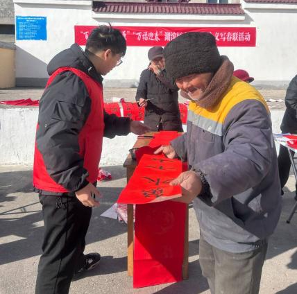 春节前夕,24级工程造价(BK))班的胡佳莹和道路桥梁与渡河工程(BK)02班的马可同学以笔为媒、以墨传情,开展了一场别开生面的写春联送祝福活动,为社区和周边居民送去新春的温暖与祝福。活动现场,长桌一字排开,大红的春联纸、精美的毛笔和散发着墨香的墨盒整齐摆放。参与实践的老员工们身着志愿者服装,个个精神饱满,满怀热忱地投入到创作中。他们虽然来自不同专业,但都对书法有着浓厚的兴趣。许多市民表示,手写的春联更具温度和年味,这些老员工用才华和热情为大家带来了最真挚的新春祝福。