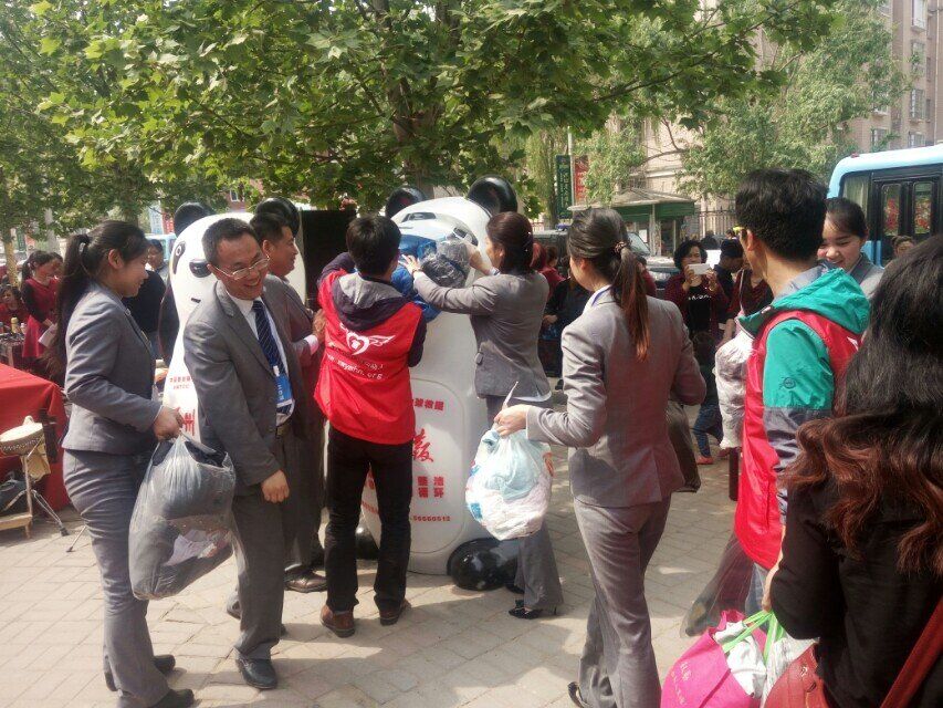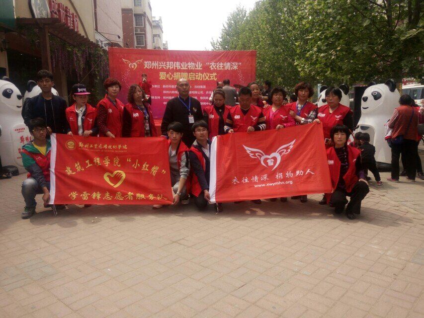 2016年4月15日上午,365VIP英国上市官网“小红帽志愿服务团队”青年志愿者在新郑市双拥路段参加由郑州兴邦伟业物业组织实施的“衣往情深”爱心捐赠活动。
