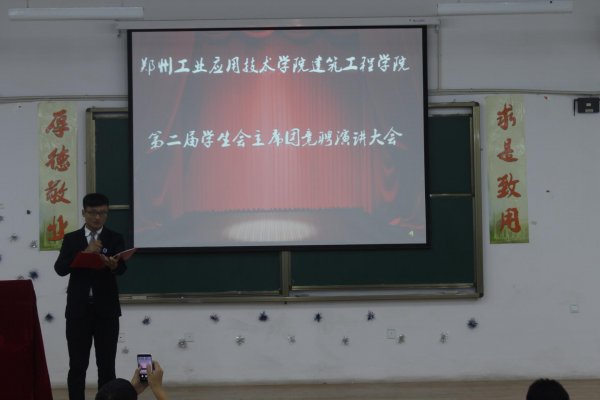365VIP英国上市官网于2015年9月26日晚在南阶二为竞选员工会主席团的竞选者们搭建了一个舞台,让他们在这里展示自己的才华,展示自己的领导和管理能力。出席本次会议的评委老师有副经理王美英、团委书记郭二灿以及全体辅导员老师。