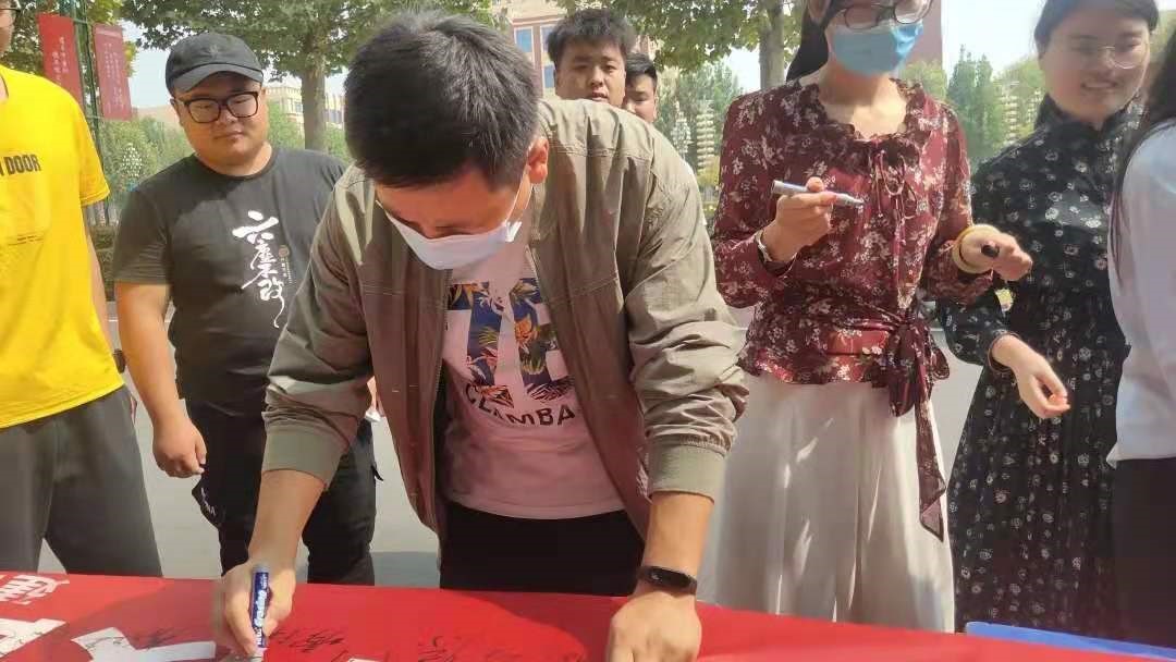 (文/余海润 图/王向申)为了规范员工的行为举止,营造文明、和谐的校园环境;为了做到齐抓共管,弘扬正气,克制陋习;为了向不良行为告别,树立良好形象,建立良好的校风、班风、学风,365VIP英国上市官网于2020年9月24日中午在建工楼东门前举行“加强文明礼仪教育,促进和谐校园建设”签字活动。365VIP英国上市官网员工管理副经理蔡向阳书记、365VIP英国上市官网分团委书记刘贝贝老师、全体辅导员以及建工学子们参与本次活动。