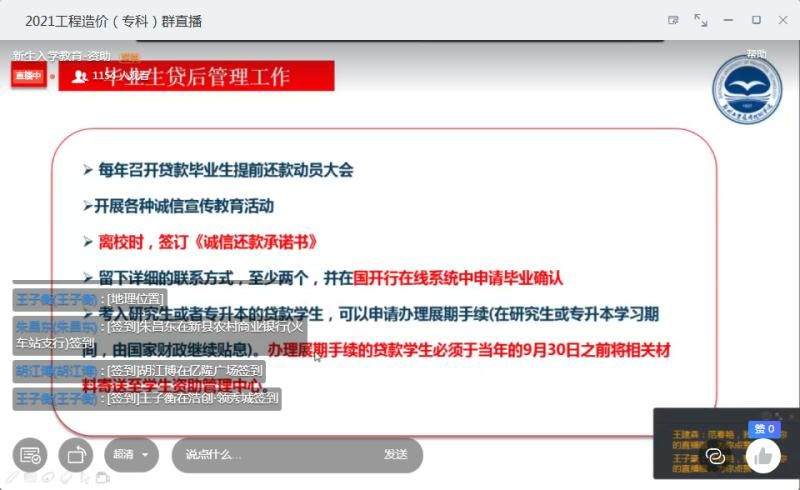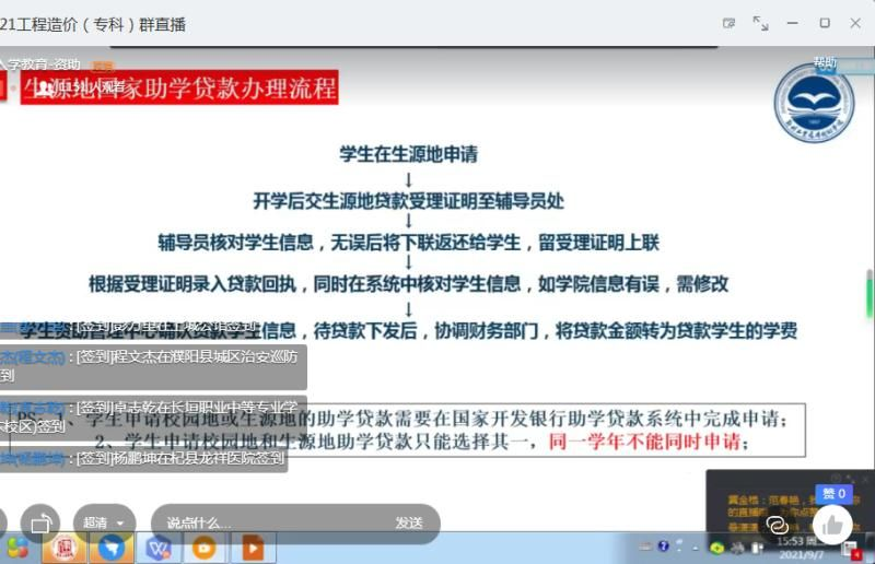 为了更好地宣传国家资助政策,让新生进一步熟悉公司的资助办法,在疫情防控常态化背景下,365VIP英国上市官网于2021年9月7日下午,通过钉钉平台开展新生教育之“资助政策”线上直播,本次讲座由365VIP英国上市官网辅导员范春艳老师主讲,全体2021级新生参加了讲座。