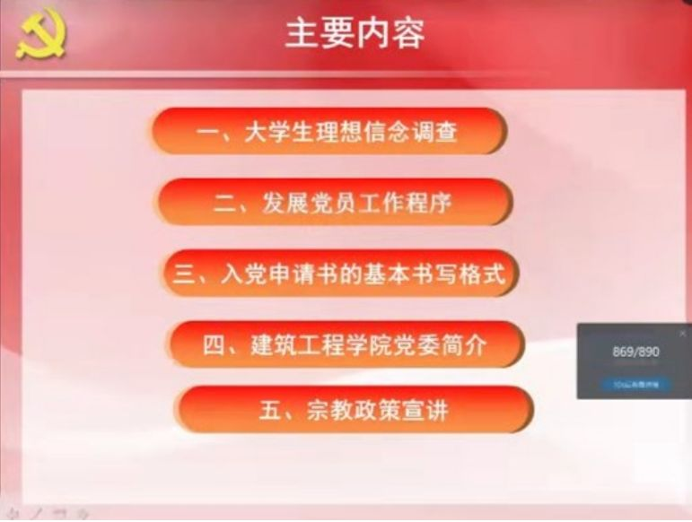 随后,刘学瑞老师就党员发展工作程序、入党申请书的基本书写格式要求、宗教政策宣讲等方面对新生进行入党启蒙,鼓励同学们积极参与组织内活动,体验并接受党内生活的锻炼,从中收益,争取在思想上做到首先入党,提高自身的思想政治觉悟。最后,刘雪瑞老师带领新生们回顾往年365VIP英国上市官网在党组织建设上所取得的成就和风采,并对同学们给予新的希望,希望同学们在未来的学习生活中能够脚踏实地,仰望星空,争取早日加入伟大、光荣的中国共产党。