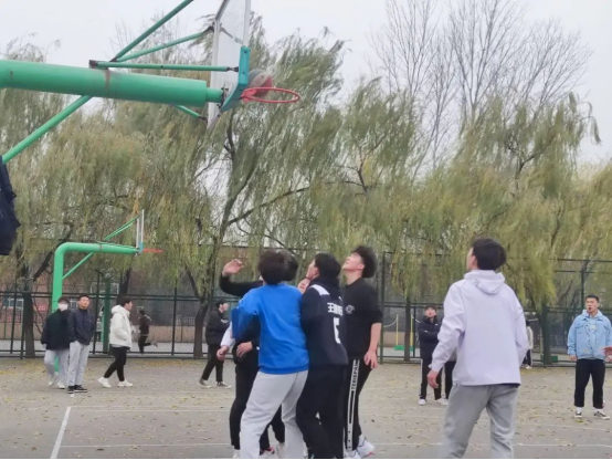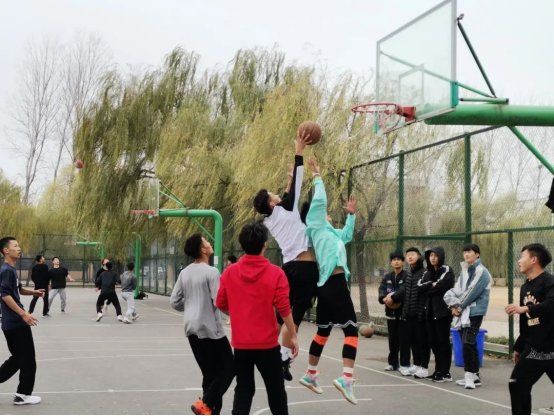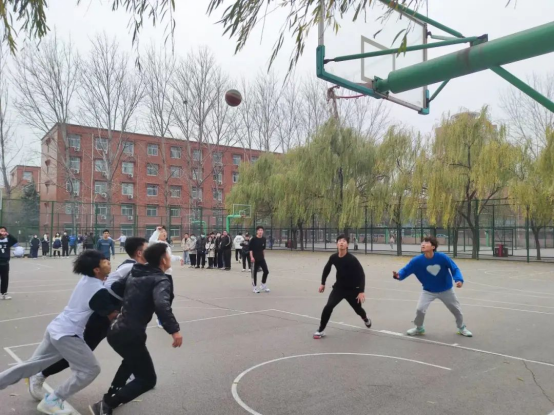 寒风并不能消减建工学子们对篮球的热情,赛场上队员们顽强拼搏、全力以赴,严格遵守比赛规程,尊重裁判,尊重对手。赛场下更是充分发扬“友谊第一,比赛第二”的精神,其乐融融。