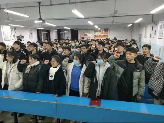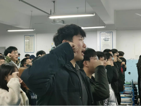 最后以宣誓结尾,同学们的宣誓铿锵有力、朝气蓬勃,相信我们的学风建设活动定会顺利完成。
