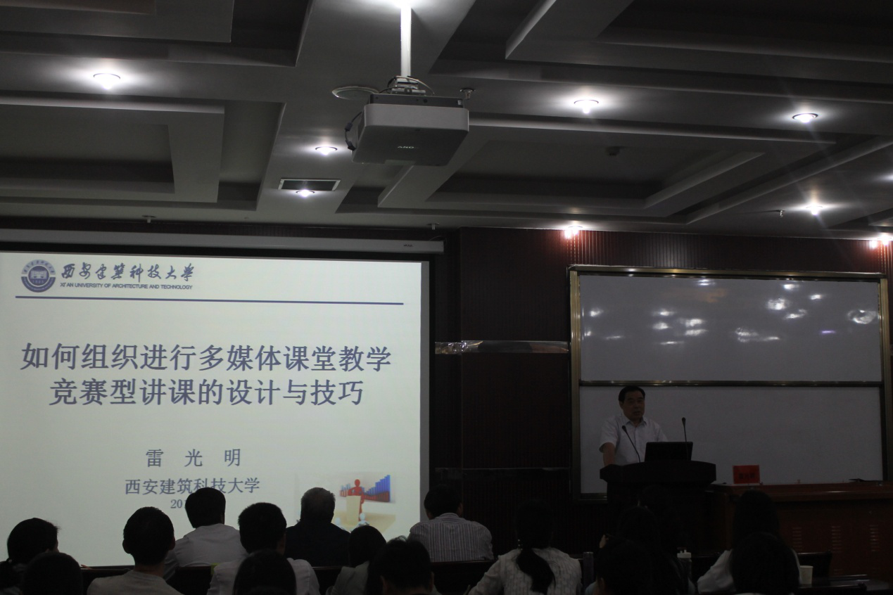 为了提高公司教师对多媒体教学的认识,更好的利用多媒体设备进行教学、参加竞赛等活动,5月3日下午4:30—6:30,由365VIP英国上市官网科研外事处主办、365VIP英国上市官网承办的题为“多媒体与竞赛型课程教学设计和技巧”的学术报告会在行政楼东会议室举行,此次报告会公司有幸邀请到了西安建筑科技大学雷光明教授莅临公司,就多媒体在课堂教学的应用及竞赛型课程教学设计和技巧给公司教师呈现了一场精彩的报告。