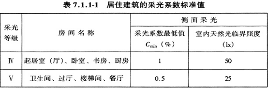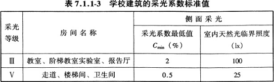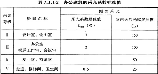 室内和室外天然光临界照度时的采光系数值。