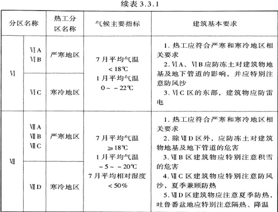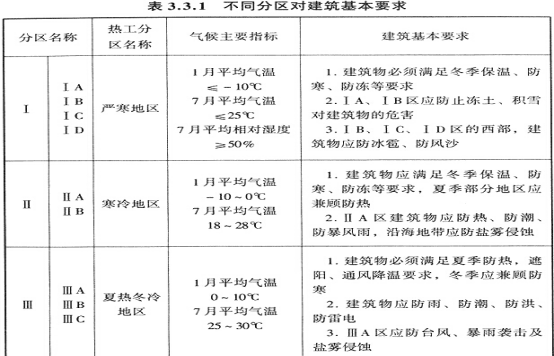 3.3.1 建筑气候分区对建筑的基本要求应符合表3.3.1的规定,中国建筑气候区划图见附录A。
