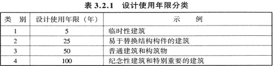 3.2.1 民用建筑的设计使用年限应符合表3.2.1的规定。